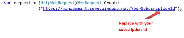 var request = (HttpWebRequest)WebRequest.Create("https://management.core.windows.net/697714da-b267-4761-bced-b75fcde0d7e1/services/hostedservices");