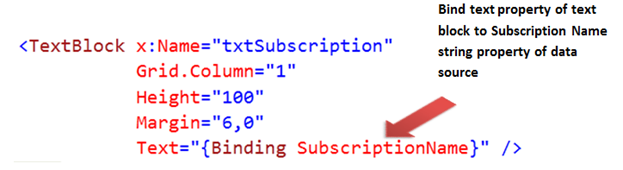 <TextBlock x:Name="txtSubscription" Grid.Column="1" Height="100" Margin="6,0" Text="{Binding SubscriptionName}" />