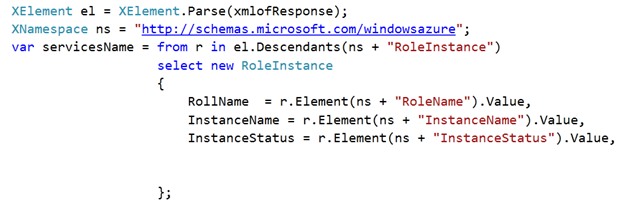 var servicesName = from r in el.Descendants(ns + "RoleInstance")