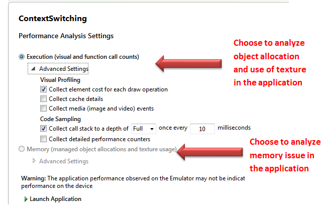 Choose your option and click on Launch Application. Application will be launched with performance analysis.