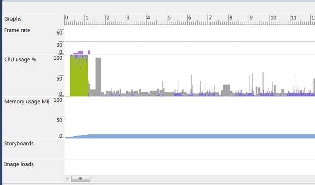 Frame Rates provides information about number of frame redrawn each second. This information is only available when display UI is getting updated. Windows Phone 7 application should have 30 to 60 second frame rate per second.