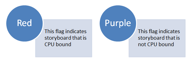 Storyboard gives information about animation in the application. There are two types of animation and represented by two different colors.