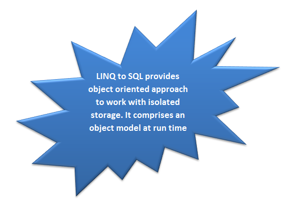 Each application is having own isolated storage and LINQ to SQL in Windows 7.1 enables us to use that as local database. LINQ to SQL gives us object model to work with local database.