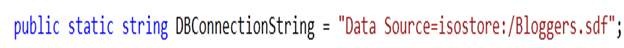 public static string DBConnectionString = "Data Source=isostore:/Bloggers.sdf";