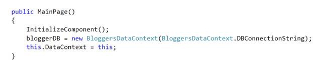 Now in constructor create instance of BloggersDataContext ,
