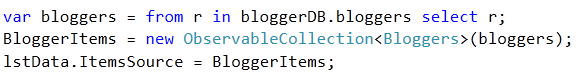 lstData.ItemsSource = BloggerItems;