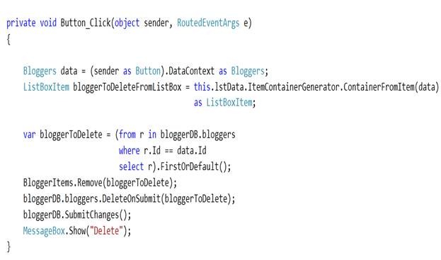 bloggerDB.bloggers.DeleteOnSubmit(bloggerToDelete);