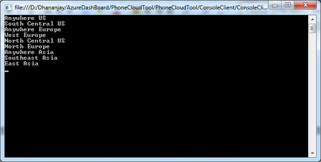 Windows Azure Management API enables you to manage Azure subscription through codes. In this post, I will show, how could you list valid datacenter locations available for given subscription using Windows Azure Management API?
