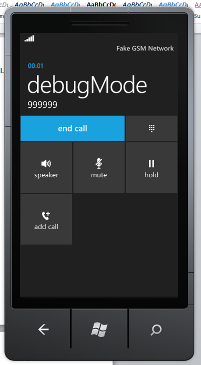 After choosing Call you will get usual Windows Phone 7 Call screen as below,