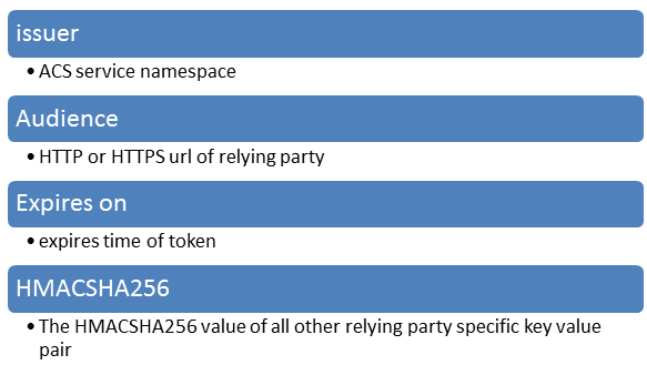 There are few keys which have to be present always in SWT token. They are as below,