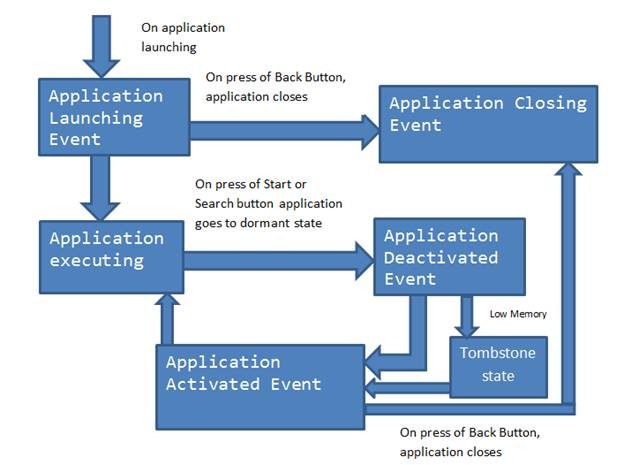 Below block diagram depicts the way various events get executed in Windows Phone 7 application lifecycle.
