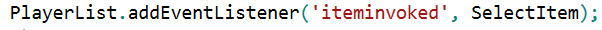 PlayerList.addEventListener('iteminvoked', SelectItem);