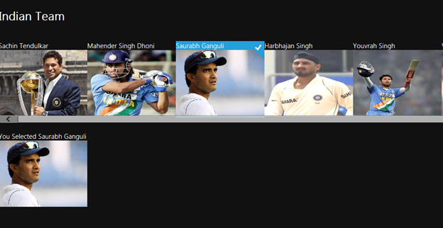 For purpose of this post I am going to bind name and images of Indian cricket player in ListView. After data binding ListView should look like below,