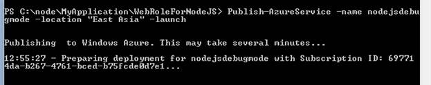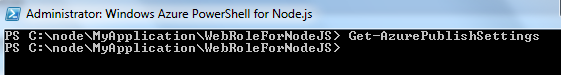 Next you need to add a WebRole to the solution. To add WebRole execute below PowerShell command. If you don’t provide any name then by default WebRole name would be WebRole1. However I am providing name as WebRoleForNodeJS