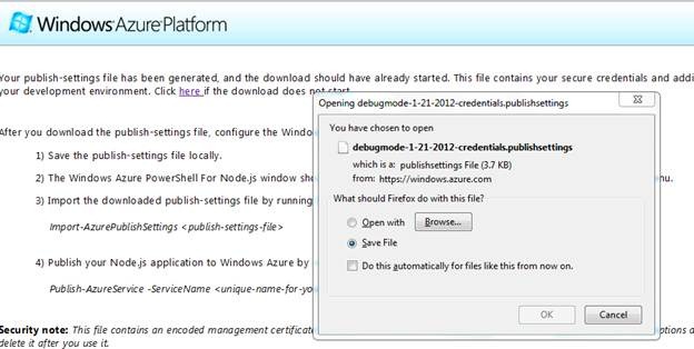 You will be redirected to live login page. Sign in to download Publish Setting file. After login you should able to download PublishSetting file. Download file inside Node folder you created in previous steps.