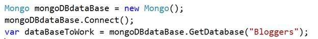 var dataBaseToWork = mongoDBdataBase.GetDatabase("Bloggers");