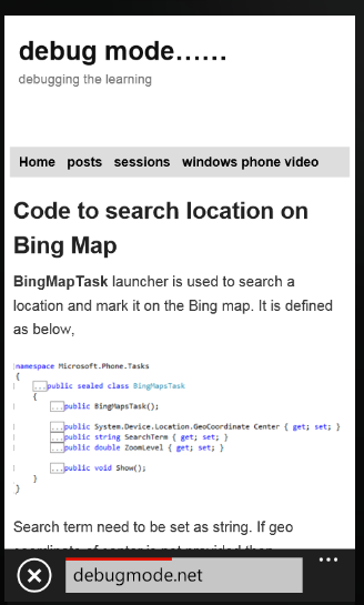 One thought on “WebBrowserTask and MediaPlayerLauncher in Windows Phone”