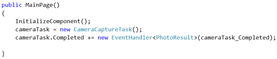 cameraTask.Completed += new EventHandler<PhotoResult>(cameraTask_Completed);