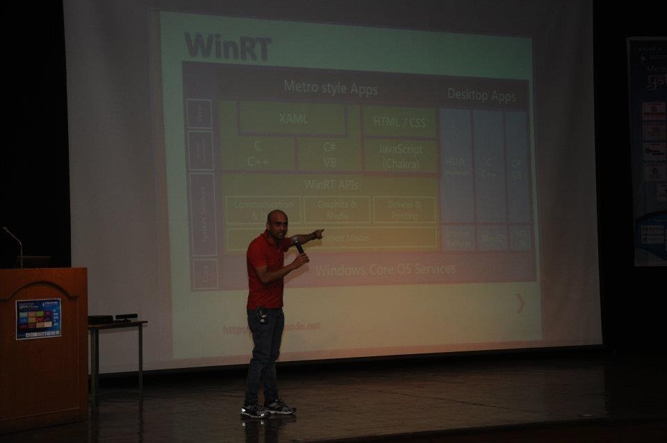 After this my session started on Windows 8. I gave an overview of Windows 8 consumer preview, Metro guidelines, Picture Password, App Store etc. to the Students