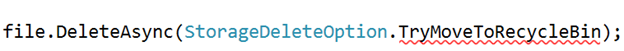 First changes in API from DP to CP was that there were no TryMoveToRecycleBin in StorageDeleteOption enum