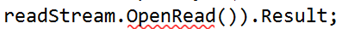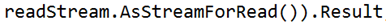 Stream inStream = Task.Run(() => readStream.AsStreamForRead()).Result;