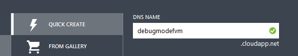 First you need to provide DNS NAME of the virtual machine. It should be unique. You will get a right mark on valid DNS name.