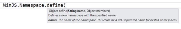 Now let us see that how can we define a Namespace in WinJs . You can define Namespace by calling the define function