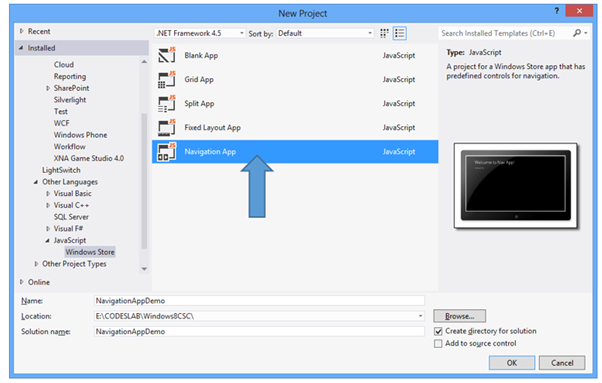 Recently I was attending a user group event and one young developer came to me with question, could you help me in finding out how to work with Navigation App Template in Windows Store App? So in this post I am trying to explain step by step working with Navigation App Template.