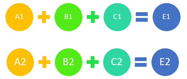Now it is simple mathematical addition rule that if we change any of A, B or C value then we will get new E.