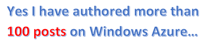 I love Windows Azure. I have been growing as professional with Windows Azure. I am excited as kid writing this and informing you that yea I have blogged more than 100 posts on Windows Azure.