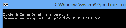Now go ahead and create a file named Server.js in your working folder. In my case it is NodeCodes folder. In Server.js write below code. In further posts we will go into detail of these codes. As of now just copy paste them to run your first Node program.
