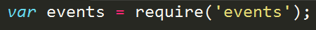 After loading events module you need to create instance of EventEmitter. This can be done as follows,