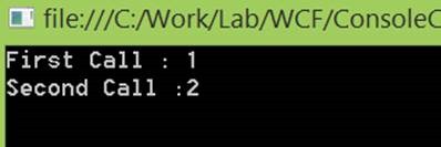 As you see we are getting 1 as output on each client request because for each client request service is creating a new instance and disposing instance once call is served. We are increasing value of counter in constructor and then decreasing it in dispose method, so across service call value of counter at service remains same.