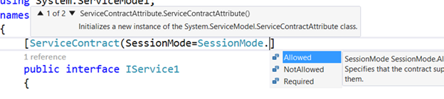 Let us see InstanceContextMode.PerSession is in action. I have created a service with SessionMode set to value Required.