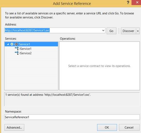 At client side while consuming service you will get information that there are two service contracts as part of the service. As you see in Add Service Reference dialog that there are two services listed and they are IService1 and IService2