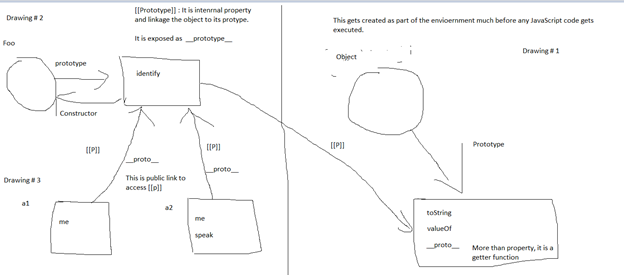 We started at 11 am with Advanced JavaScript. In this three-hour session, we mainly focused on Objects and Prototypes. At the end of two hours of JavaScript, we came up with below diagram.