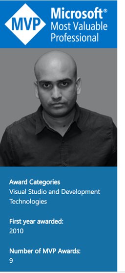 At time of writing, there are around 3000 MVP worldwide and around 75 MVP in India. Therefore, it is matter of sheer pride to be part of this exclusive group of professionals. First time I got this award in 2010 and since then I have been getting this award each year. You can find my profile here: https://mvp.microsoft.com/en-us/PublicProfile/4028360