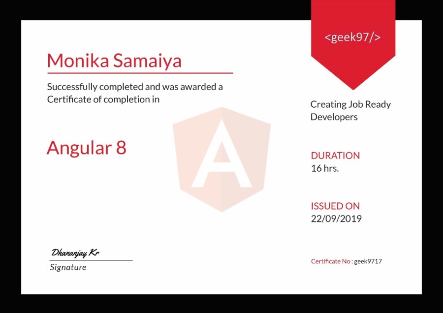 “Got a chance to attend DJs 16 hours training program on Angular 8 and that was a very informative session. Everything was explained in such an interesting way that the topics or concepts seemed to be simple and easy to catch. Would love to be a part of such sessions again 😊”