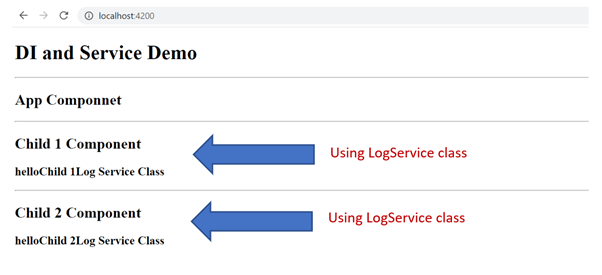 - Both the Child1Component and Child2Component has LogService token injected