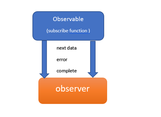 observable.subscribe( data => { console.log(data) }, error => { console.log(error) }, () => { console.log('complete ') } )