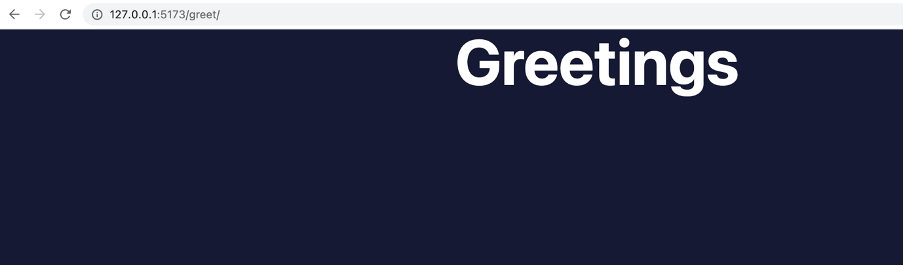 When you navigate to the – http://127.0.0.1:5173/greet/ , you should get the greet component laded as below,