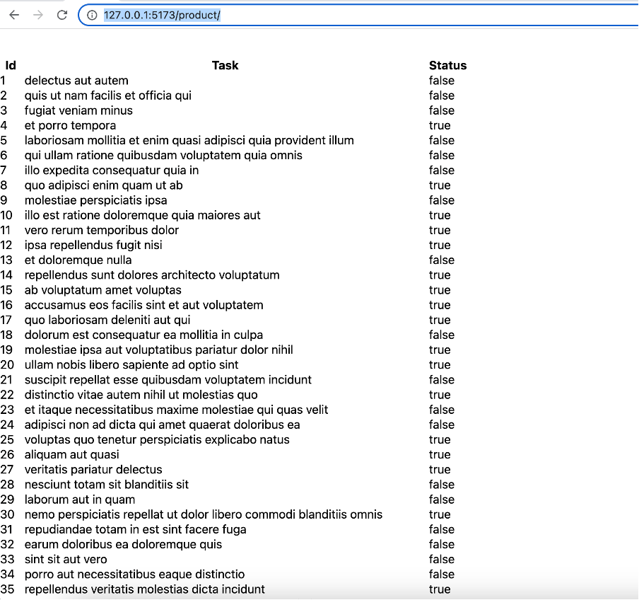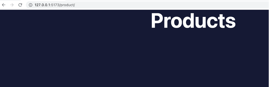 When you navigate to the – http://127.0.0.1:5173/product/ , you should get the product component laded as below,