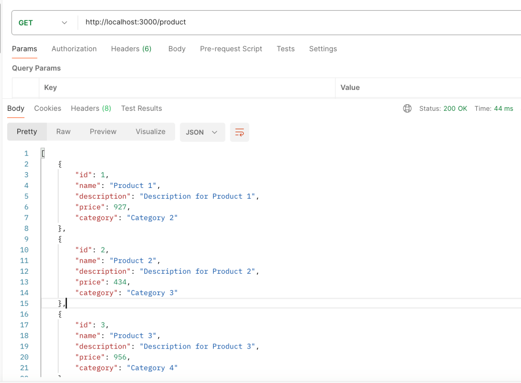 For this article, we will use the API endpoint that returns a list of Products as shown in the image below.
